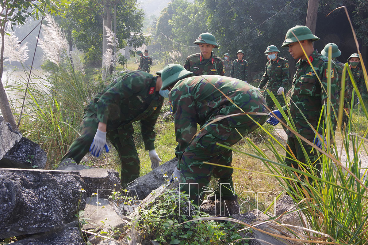 Đặc biệt, các CBCS đã tham gia giúp đỡ một số hộ dân thuộc diện giải phóng mặt bằng trên trục đường vào khu căn cứ quân sự của tỉnh thu dọn vật chất, vận chuyển đồ đạc, phát quang cây cối, vật liệu xây dựng, di chuyển cột điện… đến nơi quy định.