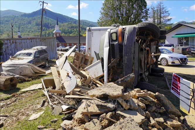 Cảnh tàn phá sau bão Helene tại Swannanoa, North Carolina, Mỹ, ngày 2/10. Ảnh: Kyodo/TTXVN