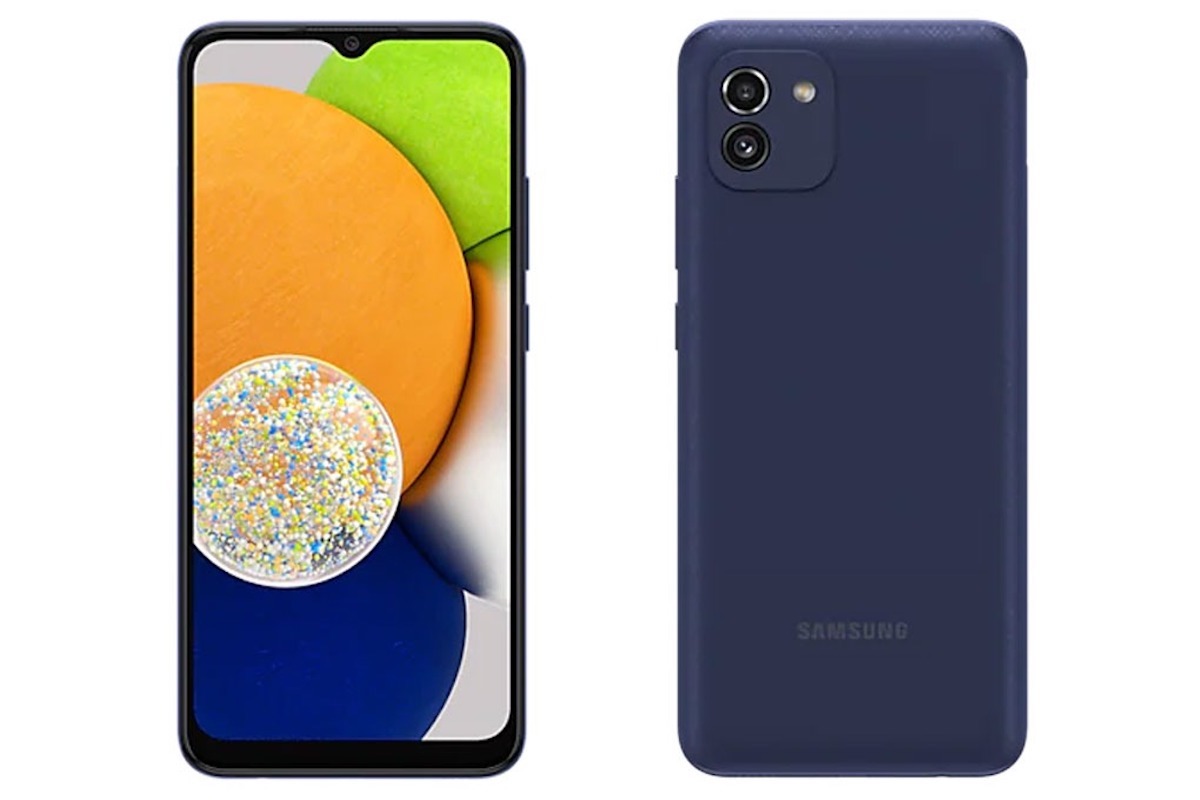 Galaxy A03 là model mới ra mắt đầu năm của Samsung và nhiều thông số gần giống A12. Máy có thiết kế nguyên khối với mặt lưng sau bo cong quen thuộc và chất liệu mờ chống bám vân tay. A03 sử dụng màn hình TFT 6,5 inch, độ phân giải HD+ với thiết kế Infinity-V đặc trưng trên các model giá rẻ của Samsung.