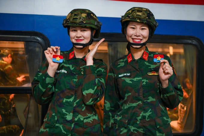 Nữ chiến sĩ lên đường vào TP HCM tham gia diễu binh 30/4 - 1/5. Ảnh: Giang Huy