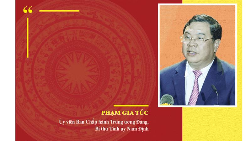 Diễn văn của đồng chí Phạm Gia Túc, Ủy viên BCH Trung ương Đảng, Bí thư Tỉnh ủy Nam Định tại Lễ kỷ niệm 60 năm Ngày Bác Hồ về thăm tỉnh Nam Định, khẳng định: “Bác đã đi xa nhưng tên tuổi và sự nghiệp của Người còn mãi với non sông đất nước ta, sống mãi trong lòng dân tộc ta. Đảng bộ, chính quyền và nhân dân Nam Định luôn khắc ghi lời dạy của Bác, làm động lực, niềm tin, tiếp tục phát huy tinh thần đoàn kết, ý chí tự lực, tự cường, tạo bước đột phá và sức bật mới, đưa Nam Định trở thành trung tâm của vùng Nam đồng bằng sông Hồng".