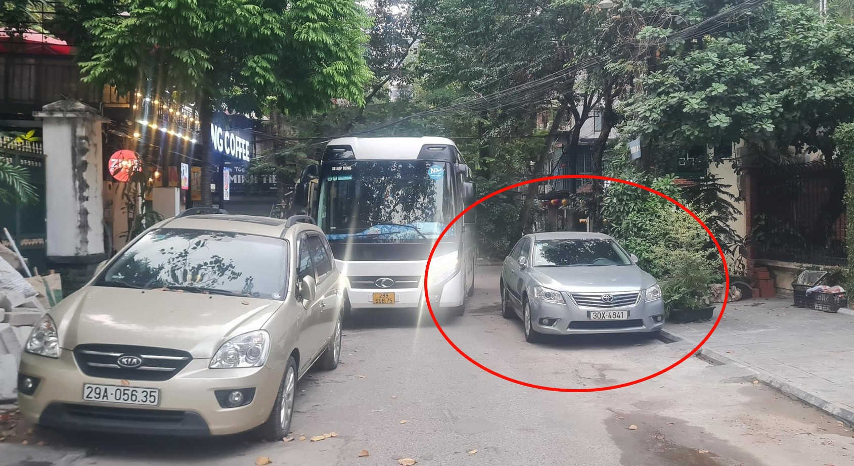 Chiếc Toyota Camry đỗ ngược chiều tại một con ngõ ở Hà Nội khiến các phương tiện khác gặp khó khăn khi di chuyển.(Ảnh: Phạm Thành)