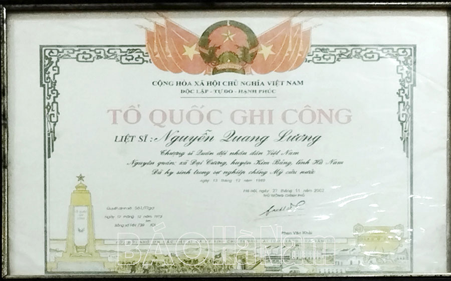 Theo chia sẻ của chị Oanh, điều may mắn nhất đó là sau nhiều năm tìm kiếm thông tin, đến năm 2010 được sự giúp đỡ của các ngành, địa phương và đơn vị, gia đình đã tìm và đưa được hài cốt của Liệt sỹ Nguyễn Quang Lương về yên nghỉ tại Nghĩa trang Liệt sỹ phường Đại Cương, thị xã Kim Bảng để các thành viên trong gia đình có thể đến thăm phần mộ và thắp nén hương thơm cho người chồng, người cha của mình. Vào tháng 7/2024, gia đình Liệt sỹ Nguyễn Quang Lương đã quyết định gửi bức thư này tới các cơ quan báo chí để nhiều người được biết đến tấm gương đạo đức cách mạng sáng ngời và lý tưởng sống cao đẹp của thế hệ cha ông – những người sẵn sàng dâng hiến tuổi thanh xuân vì lý tưởng của mình để cho đất nước nở hoa Độc lập, kết trái Tự do.