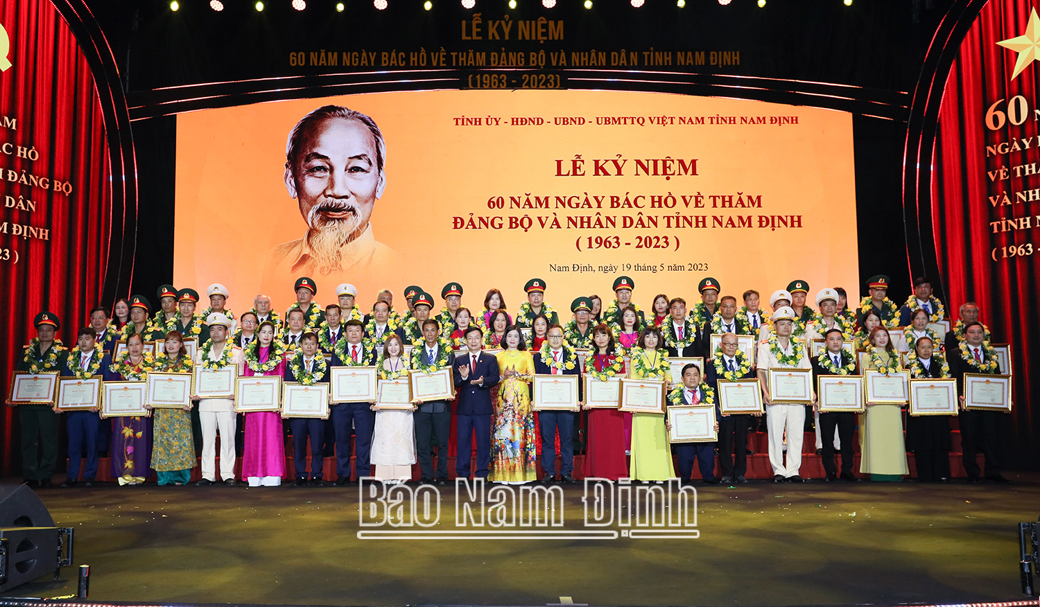 Tối 19-5, tại Nhà Văn hóa Trung tâm 3-2 (thành phố Nam Định), Tỉnh ủy, HĐND, UBND, Ủy ban MTTQ tỉnh long trọng tổ chức Lễ kỷ niệm 60 năm Ngày Bác Hồ về thăm Đảng bộ và nhân dân tỉnh Nam Định (21-5-1963 - 21-5-2023).