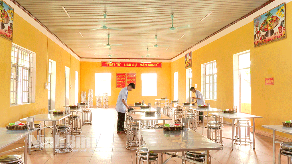 Nơi ở đã được chuẩn bị chu đáo, đảm bảo vệ sinh và an toàn sẵn sàng đón các tân binh.Nơi ăn đã được chuẩn bị chu đáo để đón các chiến sĩ mới.
