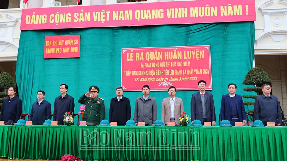 Sáng 1-3, lực lượng vũ trang (LLVT) thành phố Nam Định tổ chức lễ ra quân huấn luyện năm 2024 và phát động đợt thi đua cao điểm với chủ đề “Tiếp bước chiến sĩ Điện Biên - Tiến lên giành 3 nhất”. Đồng chí Nguyễn Anh Tuấn, Ủy viên Ban TVTU, Bí thư Thành ủy, Chủ tịch HĐND thành phố Nam Định và lãnh đạo Bộ Chỉ huy Quân sự (CHQS) tỉnh, lãnh đạo thành phố Nam Định tới dự.