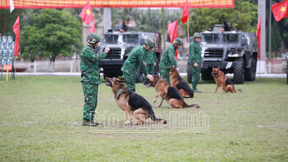 | Màn biểu diễn của đội huấn luyện chó nghiệp vụ (Bộ Chỉ huy BĐBP tỉnh). |