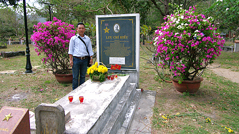 | Tác giả bên mộ chí Anh hùng LLVTND Lưu Chí Hiếu tại Nghĩa trang Hàng Dương, huyện đảo Côn Đảo, tỉnh Bà Rịa - Vũng Tàu. |