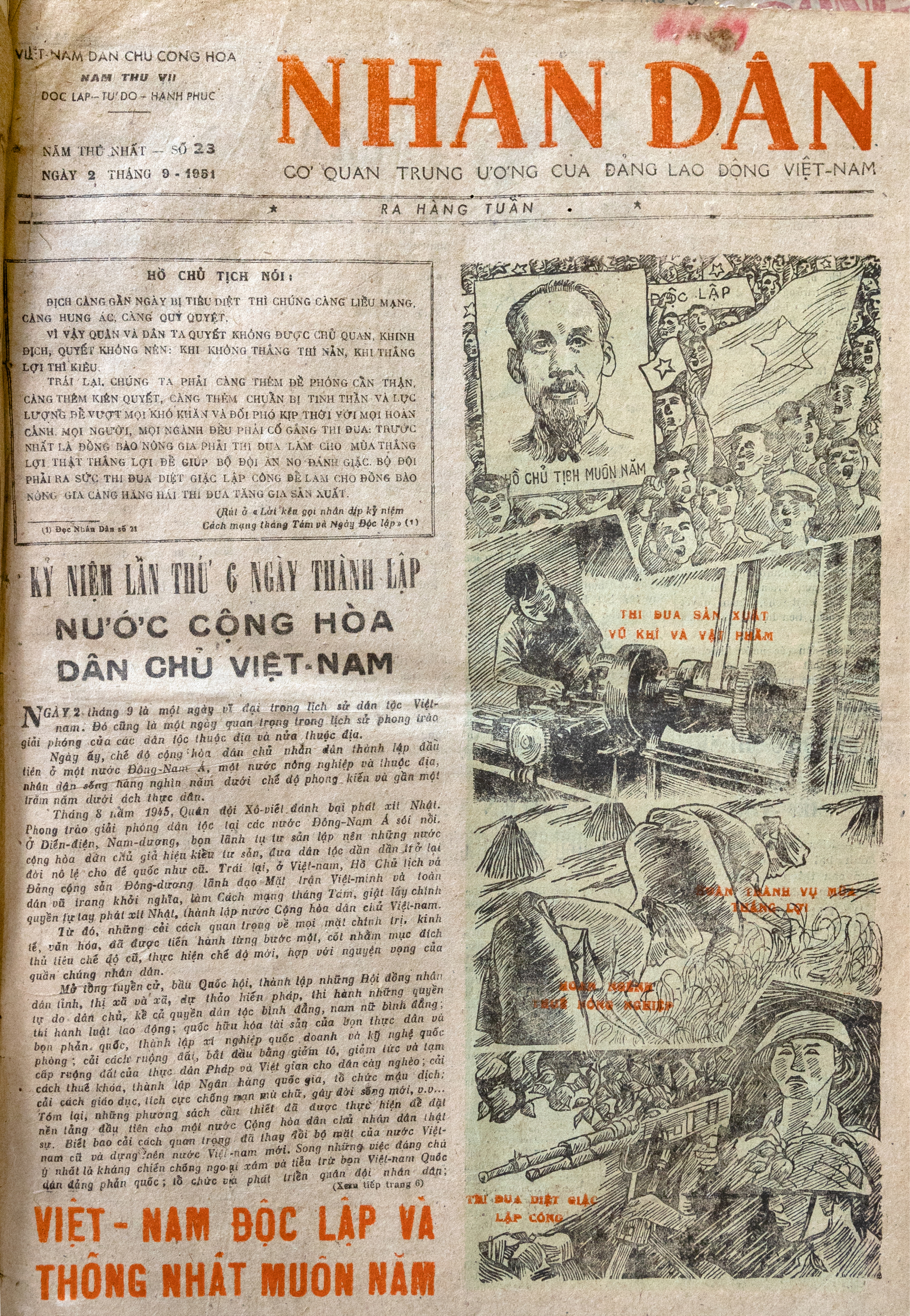 | Tờ báo Nhân Dân số ra ngày 2/9/1951. |