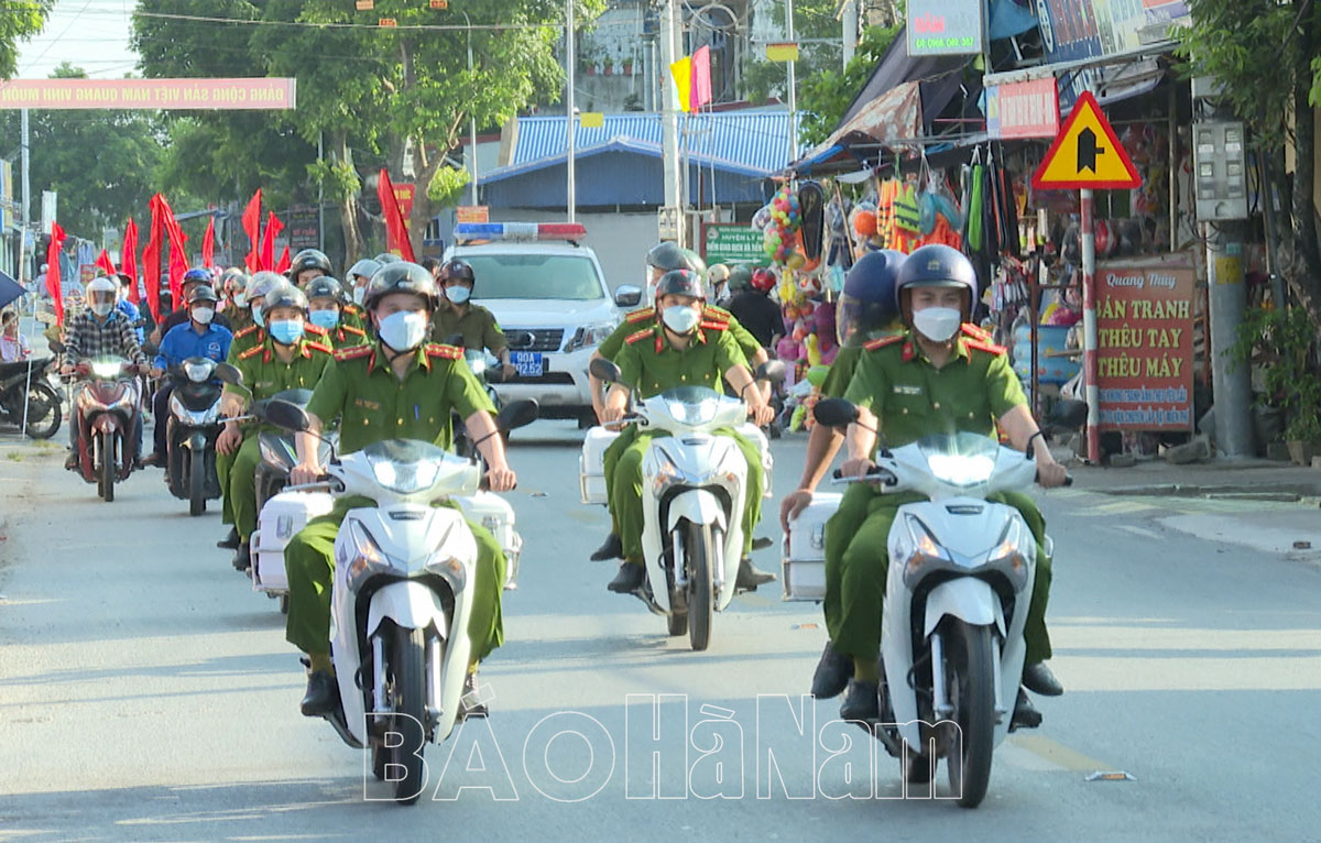 Các lực lượng tổ chức tuyên truyền lưu động tại xã Tiến Thắng và các địa bàn lân cận.