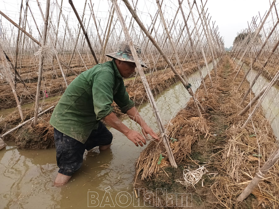 Cũng như mọi năm, vụ đông năm nay chị Nguyễn Thị Tuyết, xóm Nhân Sơn, thôn 4, xã Nhân Nghĩa trồng 9 sào cây vụ đông (gồm: hơn 4 sào ngô, 3,5 sào dưa chuột, còn lại là bí đỏ). Trận mưa lớn cuối tháng 9, dù đã chủ động, tích cực bơm tiêu nhưng toàn bộ diện tích 9 sào cây vụ đông đã trồng của gia đình chị bị mất trắng, phải trồng lại hoàn toàn. Dù tiếc công, tốn chi phí, nhưng không nản lòng, ngay khi mưa dứt, nước rút chị Tuyết đã ra đồng gieo trồng lại diện tích cây vụ đông bị mất trắng. Chỉ vào luống ngô đã được 5 lá, chị Tuyết chia sẻ: Trước trận mưa cuối tháng 9, ngô đã trổ cờ. Trận mưa lớn cuối tháng 9 làm cây trồng hỏng hoàn toàn. Theo dõi sát sao tình hình thời tiết, phán đoán diện tích cây vụ đông sẽ phải trồng lại, tôi đã chủ động chuẩn bị các loại giống sẵn sàng gieo trồng lại ngay khi nước rút. Cây ngô trồng lại giờ đã được 5 lá. Mong từ nay đến ngày thu hoạch thời tiết thuận lợi để nông dân có thu nhập trang trải cuộc sống hằng ngày.