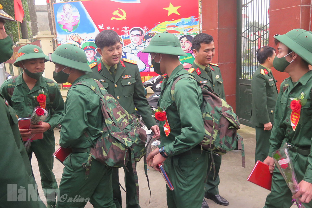 Phát biểu tại lễ giao quân, đại diện Hội đồng Nghĩa vụ quân sự huyện Lý Nhân căn dặn các tân binh hãy đoàn kết, thương yêu giúp đỡ nhau cùng tiến bộ; chấp hành nghiêm pháp luật nhà nước, kỷ luật quân đội, tích cực học tập, rèn luyện, khắc phục khó khăn, hoàn thành tốt nhiệm vụ được giao. Mỗi tân binh cần xây dựng động cơ phấn đấu đúng đắn, tu dưỡng, rèn luyện để sớm trở thành người quân nhân ưu tú, đảng viên Đảng Cộng sản Việt Nam, xứng đáng với danh hiệu “Bộ đội Cụ Hồ” trong thời kỳ mới.