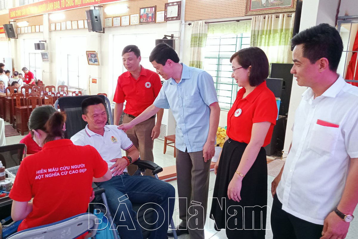 Lãnh đạo UBND huyện Lý Nhân động viên các tình nguyện viên tại ngày hội hiến máu tình nguyện.