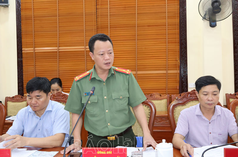 Đại diện lãnh đạo Công an huyện Lý Nhân phát biểu tại hội nghị.