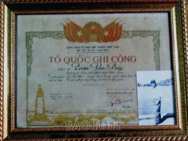 Năm 2018, đúng tròn kỷ niệm 30 năm Liệt sỹ Trần Văn Bảy cùng 63 đồng đội hy sinh để bảo vệ chủ quyền biển đảo của Tổ quốc, ngôi nhà tình nghĩa mang nặng tình cảm của đồng đội Quân chủng Hải quân, Hội truyền thống Cựu chiến binh Hải quân, Hội truyền thống Đoàn tàu không số tỉnh Hà Nam và nhiều tập thể, cá nhân xa gần… đã được dựng lên trên nền đất gia đình tại thôn Phương Thượng, Xã Lê Hồ (Kim Bảng). Ngôi nhà tình nghĩa ấy giờ đây là nơi thắp hương tưởng niệm người cha “Chiến sĩ Điện Biên”, người “Mẹ Việt Nam Anh hùng”, cùng ba anh em liệt sỹ đã anh dũng hy sinh vì Tổ quốc; là nơi hội tụ, quây quần con cháu mỗi dịp lễ, Tết, để nhắc nhớ, lưu truyền bao câu chuyện xúc động, thấm đẫm niềm tự hào về truyền thống quê hương, truyền thống gia đình. Bức thư cùng tấm áo Hải quân Nhân dân, vài bức ảnh và con ốc biển Trường Sa mà chiến sỹ hải quân Trần Văn Bảy gửi về đã được gia đình trao tặng bảo tàng phục vụ công tác giáo dục truyền thống.