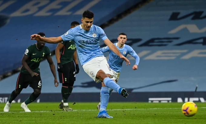 Một năm trước. Ilkay Gundogan đá hỏng phạt đền cuối hiệp một, khiến Man City thua Tottenham 0-2. Ở cuộc chạm trán tối 13/2, tiền vệ người Đức tiếp tục liên quan tới phạt đền, khi bị Pierre-Emile Hojbjerg phạm lỗi trong cấm địa. Tuy nhiên, Gundogan nhường quyền sút cho Rodri. Tiền vệ người Tây Ban Nha chớp thời cơ mở tỷ số cho đội chủ nhà giữa hiệp một.