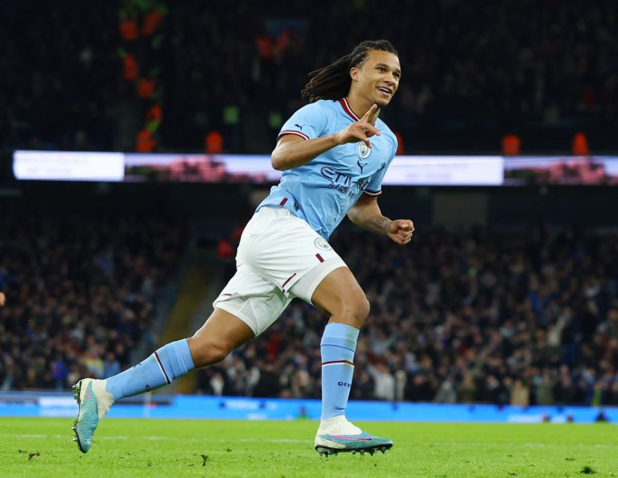 Ake (trái) ghi bàn duy nhất vào lưới Arsenal trên sân Etihad, Manchester, Anh ở vòng bốn Cup FA tối 27/1/2023.