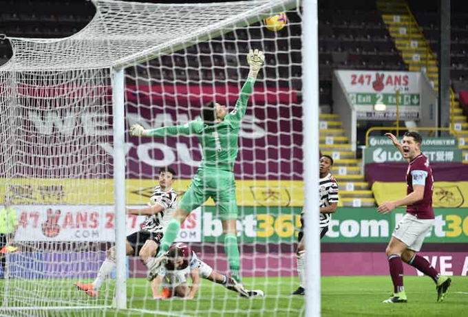 Maguire đánh đầu tung lưới Burnley nhưng không được công nhận.