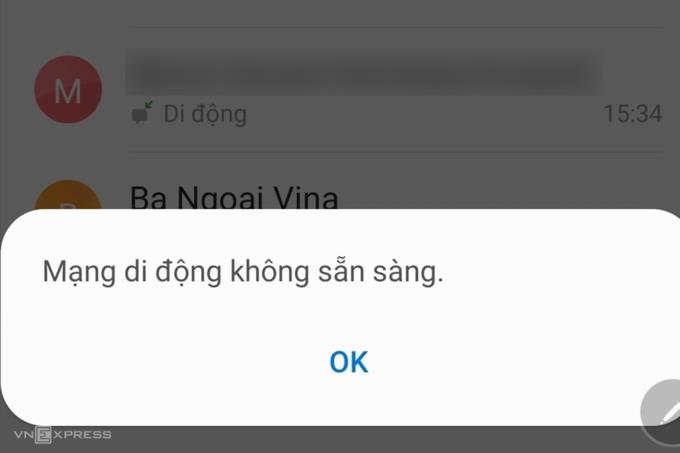 Màn hình điện thoại của chủ thuê bao MobiFone thông báo mạng di động không khả dụng lúc 18h ngày 29/9. Ảnh: Anh Bình.