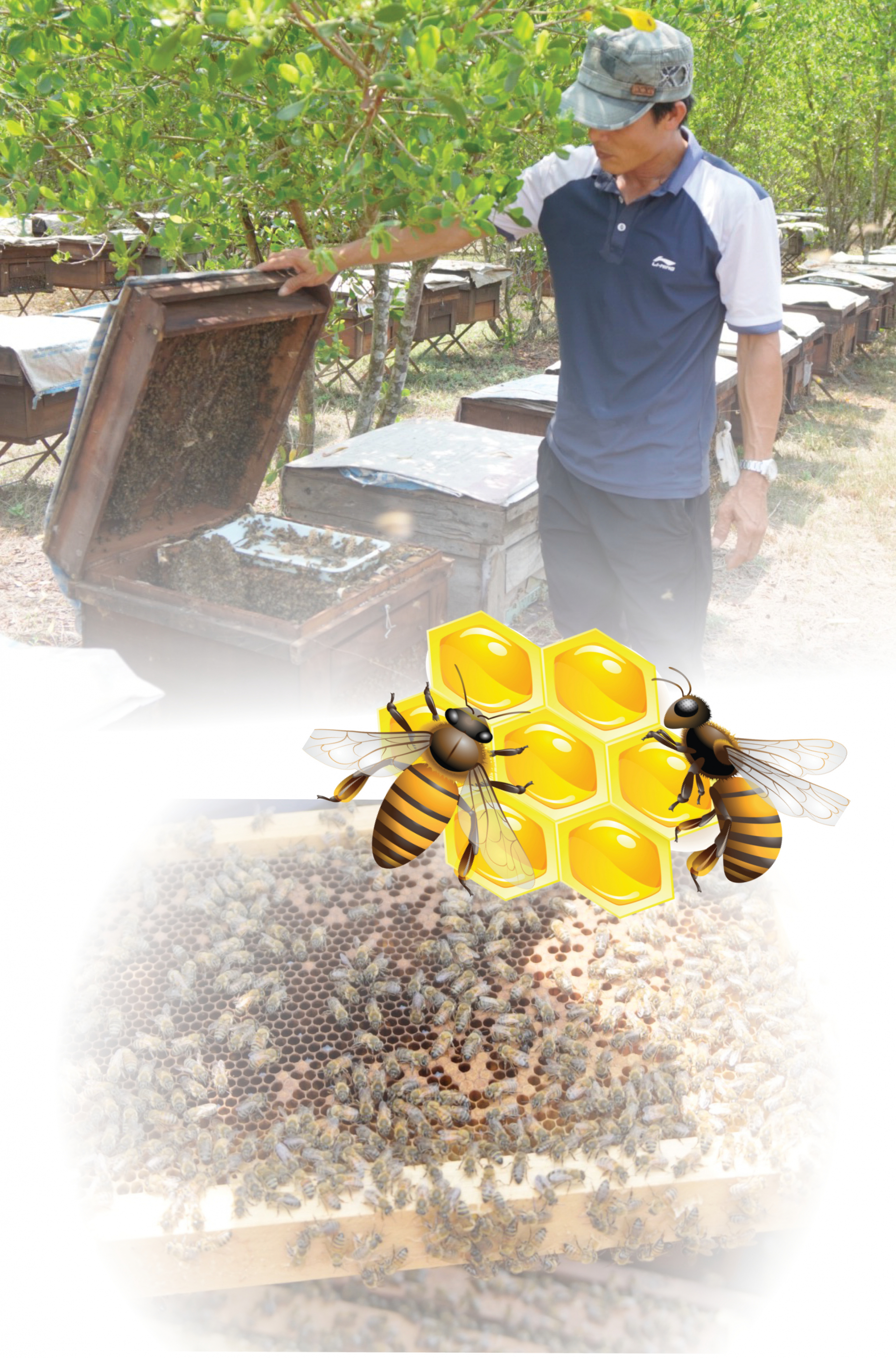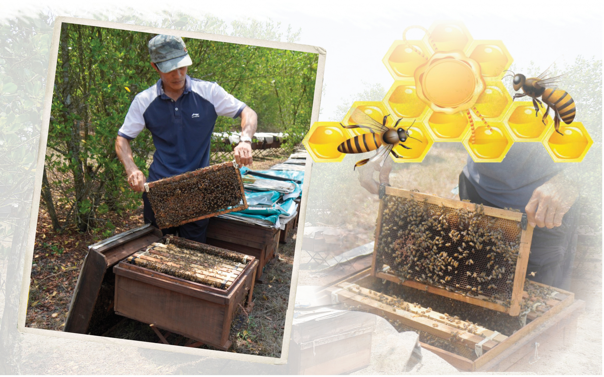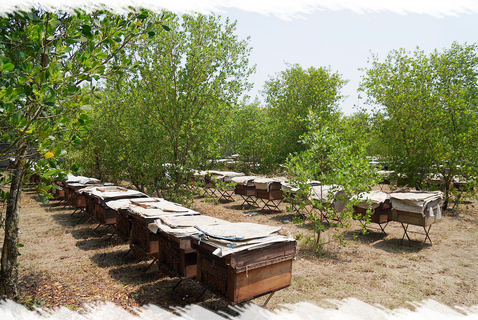 | Anh Bùi Văn Bắc đưa 400 đàn ong mật về hút mật hoa sú vẹt. |