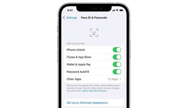 Thiết lập gương mặt thay thế: Face ID có thể gặp khó khăn khi nhận diện bạn nếu ngoại hình thay đổi (đeo kính, để râu...). Hãy thiết lập thêm một gương mặt thay thế (Set Up an Alternate Appearance) trong phần cài đặt Face ID & Passcode của iPhone.