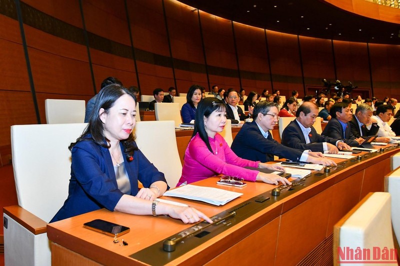 Các đại biểu Quốc hội biểu quyết thông qua Nghị quyết về việc miễn nhiệm Tổng Kiểm toán Nhà nước nhiệm kỳ 2021-2026.