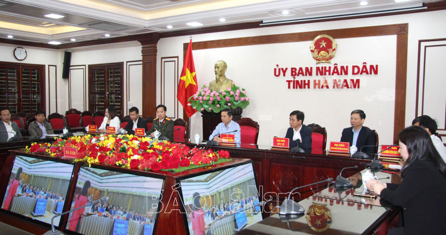 Các đại biểu dự hội nghị tại điểm cầu tỉnh Hà Nam.
