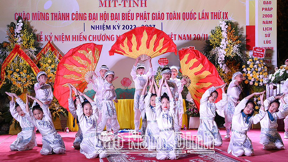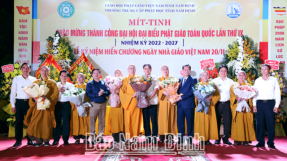 Ngày 30-11, tại Trung tâm Phật giáo Trúc Lâm Thiên Trường (Nam Định), Ban Trị sự Giáo hội Phật giáo các tỉnh: Nam Định, Thái Bình, Ninh Bình tổ chức lễ mít tinh chào mừng thành công Đại hội đại biểu Phật giáo toàn quốc lần thứ IX, nhiệm kỳ 2022-2027. Dự lễ mít tinh có các đồng chí: Lê Quốc Chỉnh, Phó Bí thư Thường trực Tỉnh ủy, Chủ tịch HĐND tỉnh, Trưởng đoàn Đoàn đại biểu Quốc hội tỉnh; Hòa thượng Thích Thanh Nhiễu, Phó Chủ tịch Thường trực Hội đồng Trị sự Trung ương Giáo hội Phật giáo Việt Nam (GHPGVN); Trần Minh Thắng, Ủy viên Ban TVTU, Trưởng Ban Dân vận Tỉnh ủy; Trần Lê Đoài, TUV, Phó Chủ tịch UBND tỉnh; lãnh đạo một số sở, ban, ngành của tỉnh.