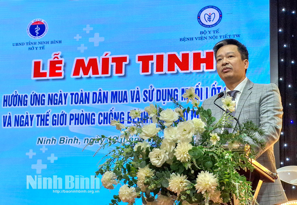 Tại buổi mít tinh, lãnh đạo Sở Y tế Ninh Bình đã kêu gọi sự ủng hộ của các cấp chính quyền, các ban, ngành, đoàn thể, các tổ chức quốc tế, doanh nghiệp, đơn vị y tế trong và ngoài công lập cùng toàn thể cộng đồng hãy quan tâm, hỗ trợ và chung sức đẩy mạnh công tác xã hội hóa trong các hoạt động phòng, chống bệnh đái tháo đường tại Ninh Bình.