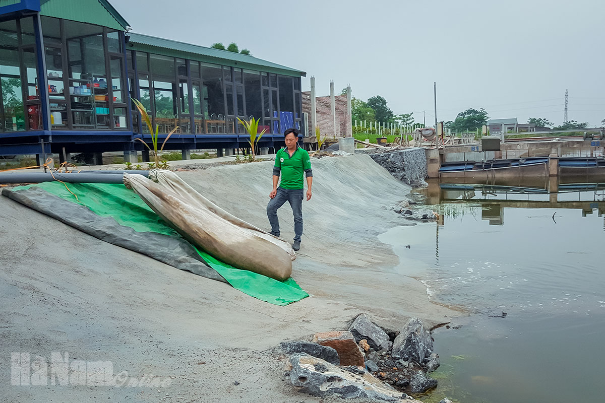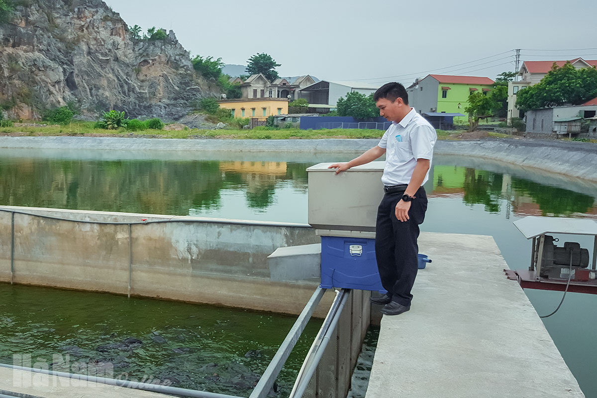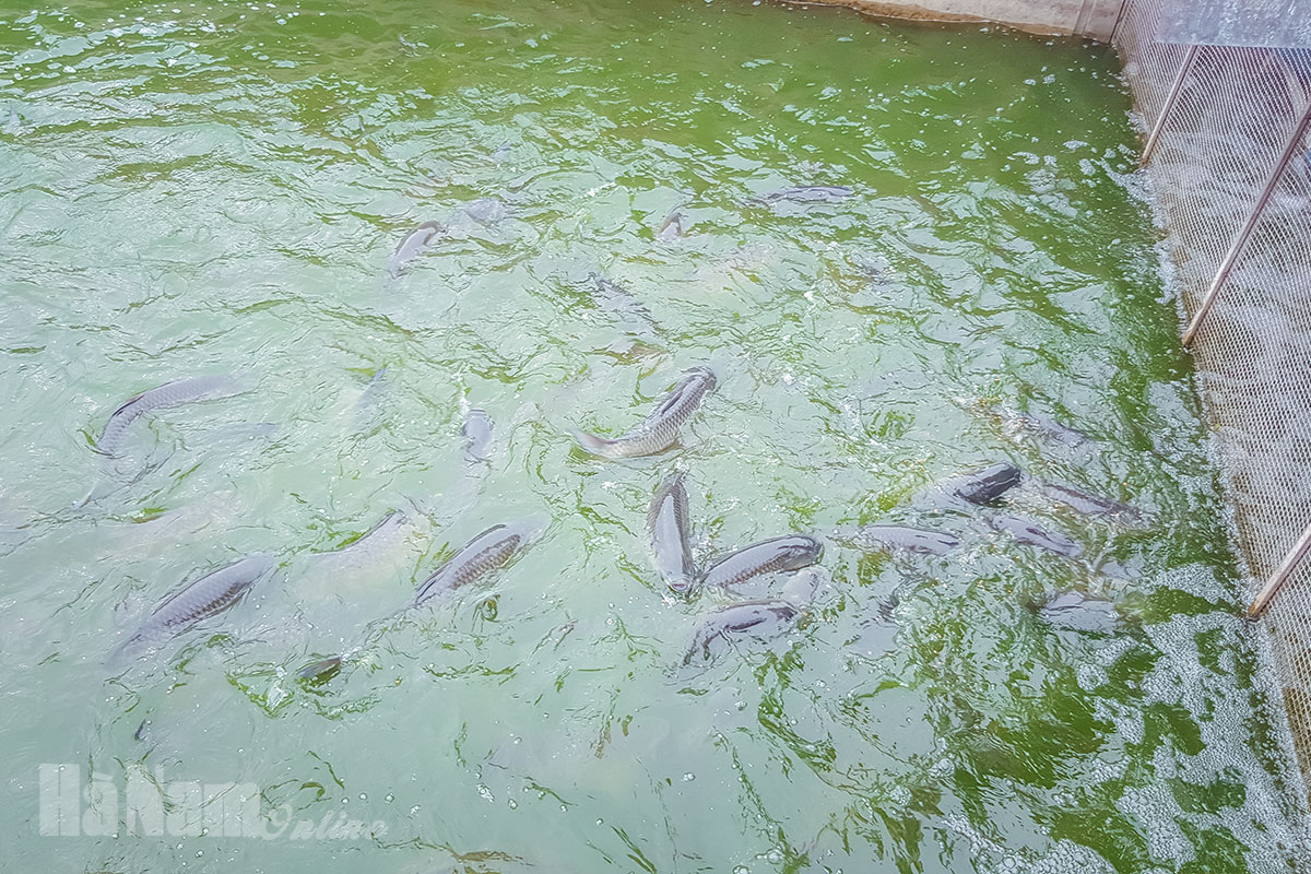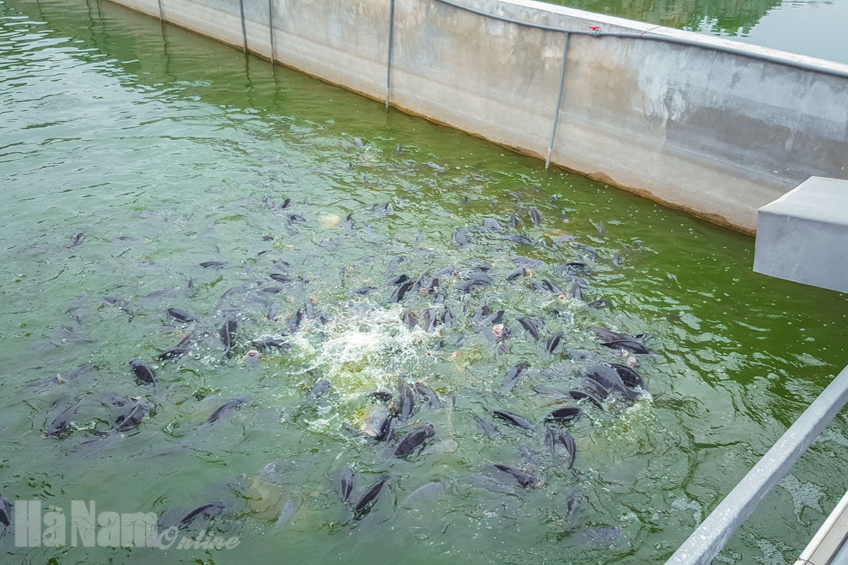 Khu nuôi thả cá rộng 4ha của HTXNước thải thu gom chảy về hệ thống bể bioga, qua xử lý sẽ được dùng làm nước tưới cho cây trồngMáy thu gom chất thải của cá nuôiGiàn sủi tạo ôxy bằng khí nénCho cá trong máng ăn bằng máy tự độngCông nhân vận hành bơm nước vào các khu máng nuôi qua lọc bằng hệ thống túi lọcKỹ sư thủy sản kiểm tra chỉ tiêu môi trường nước định kỳMáng nuôi cá rô phi Thái LanMáng nuôi cá trắm cỏNướng cá rô phi cho khách đặt hàngSản phẩm chế biến từ cá của công tyCơ sở bán sản phẩm của HTX tại đường Lê Công Thanh, Phủ Lý.