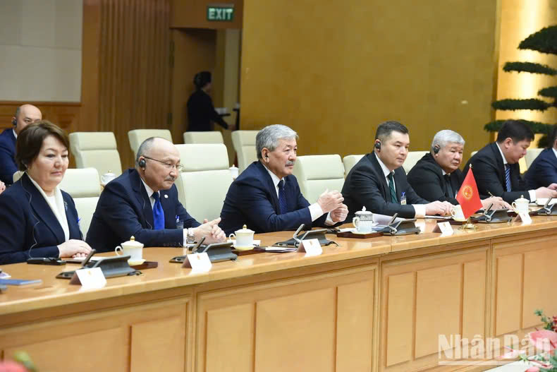 Sáng 6/3, sau lễ đón chính thức được tổ chức long trọng tại Phủ Chủ tịch, Thủ tướng Chính phủ Phạm Minh Chính đã hội đàm với Thủ tướng Kyrgyzstan Adylbek Kasimalyev.