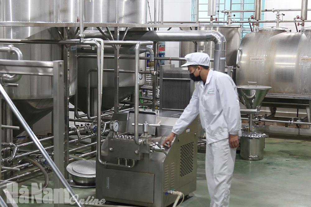 Hệ thống dây chuyền hiện đại của Công ty cổ phần sữa và giống bò sữa Mộc Bắc (thị xã Duy Tiên).