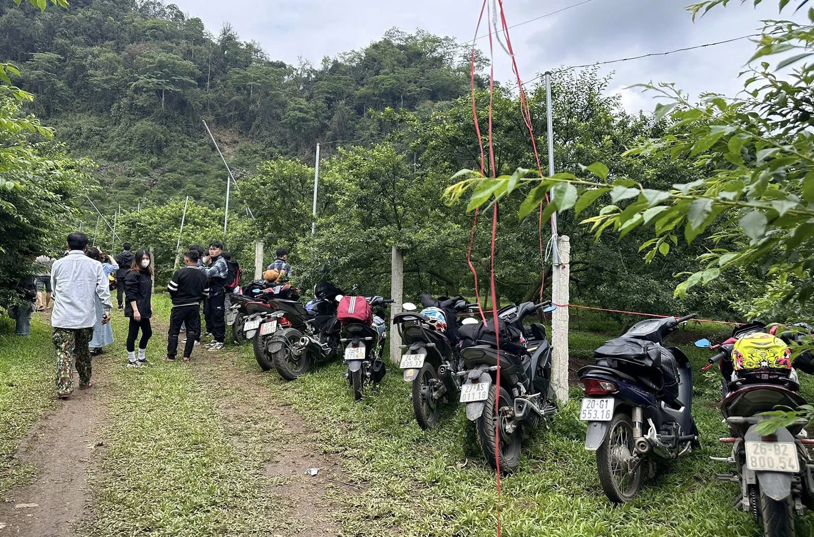 Du khách vào vườn mận dịp 30/4. Ảnh: Hải Yến