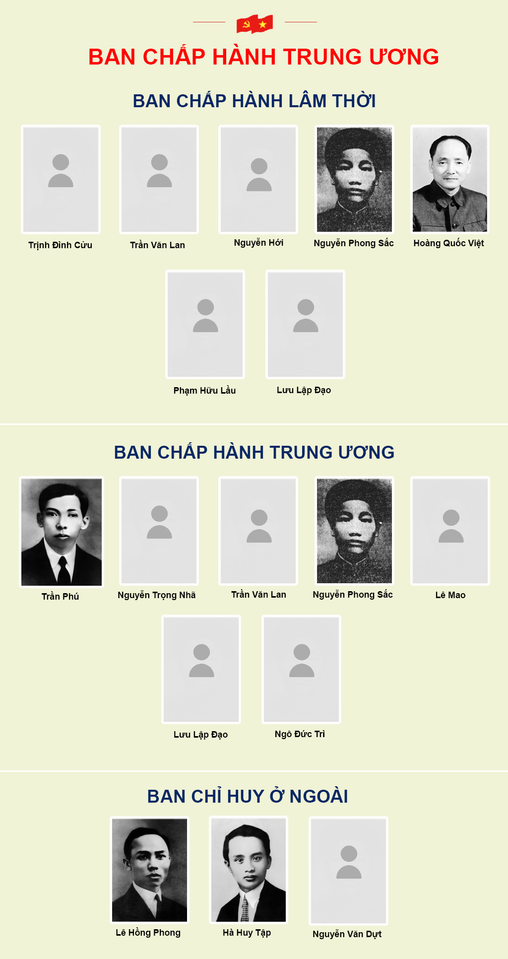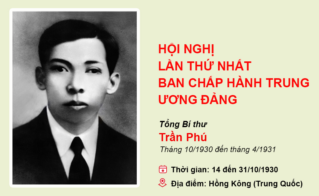 Tháng 10/1930, Hội nghị lần thứ nhất Ban Chấp hành Trung ương lâm thời có ý nghĩa như một Đại hội cũng tổ chức tại Hồng Kông (Trung Quốc), do đồng chí Trần Phú chủ trì, quyết định đổi tên Đảng thành Đảng Cộng sản Đông Dương, thông qua bản Luận cương chính trị của Ðảng Cộng sản Ðông Dương do đồng chí Trần Phú khởi thảo. Hội nghị bầu Ban Chấp hành Trung ương chính thức gồm 7 đồng chí: Trần Phú, Nguyễn Trọng Nhã, Lê Mao, Trần Văn Lan, Nguyễn Phong Sắc, A Lầu (Lưu Lập Đạo), Ngô Đức Trì. Đồng chí Trần Phú làm Tổng Bí thư của Đảng.