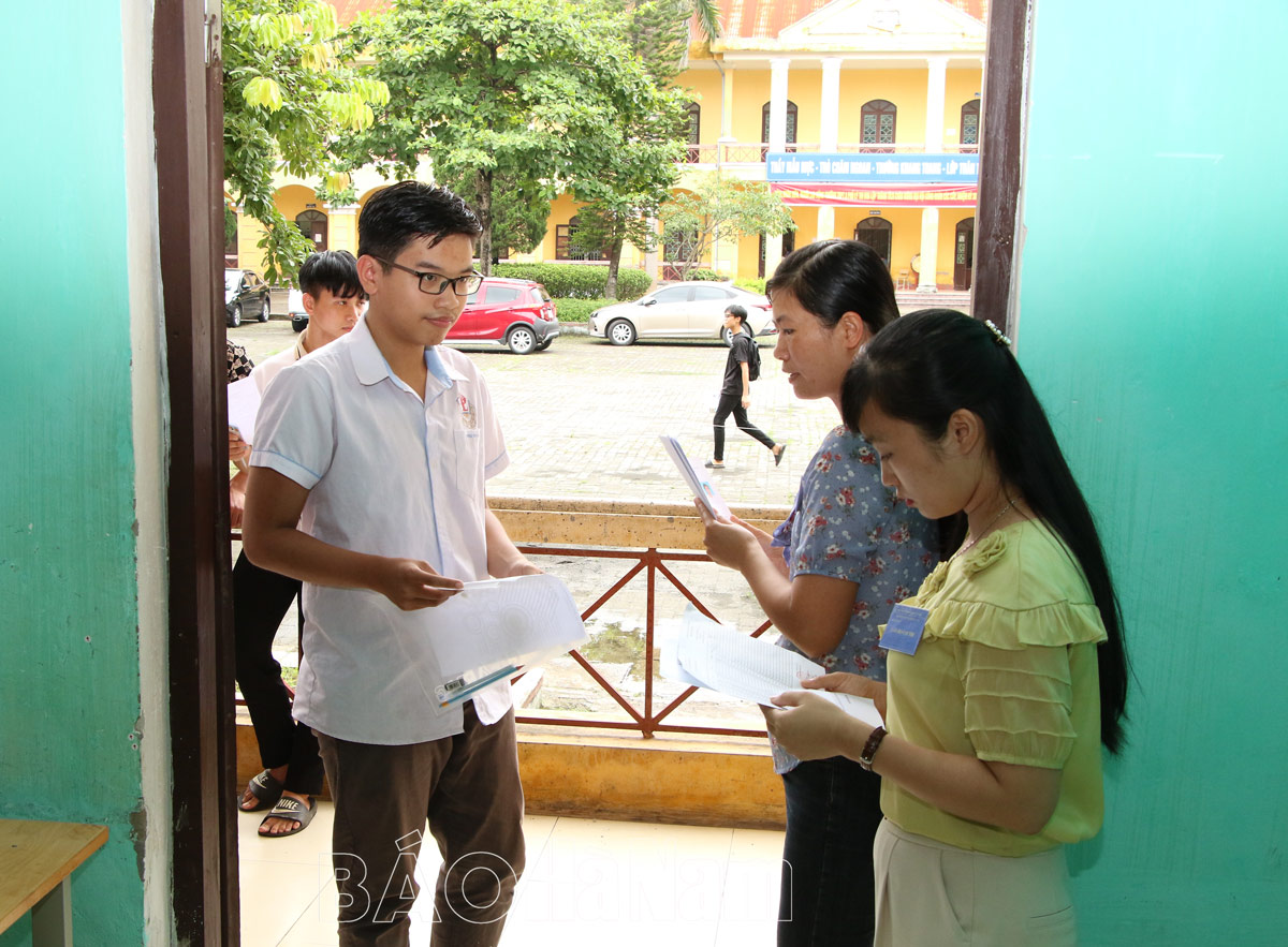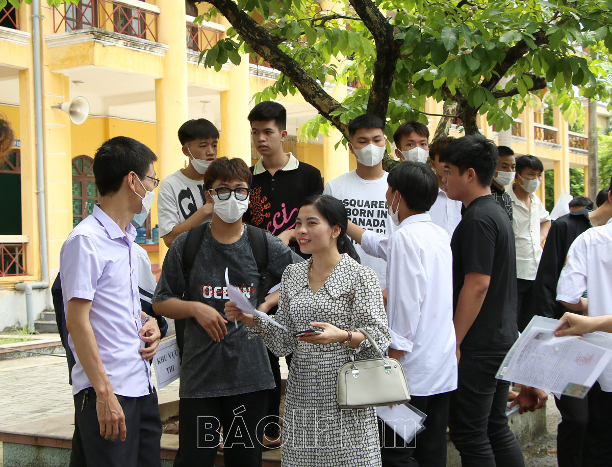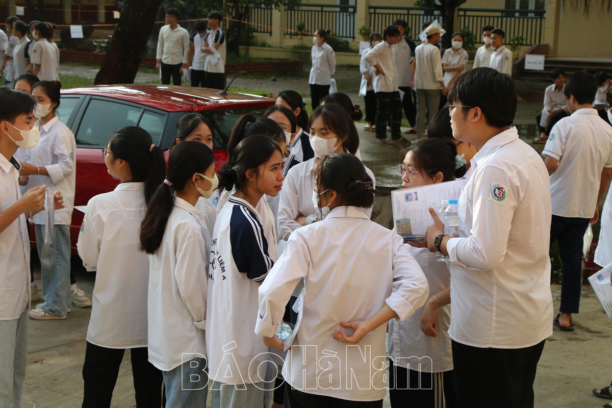 Tại điểm thi THPT A Phủ Lý, cô và trò trường Cao đẳng nghề Hà Nam sau buổi thi rất vui vẻ và hy vọng.