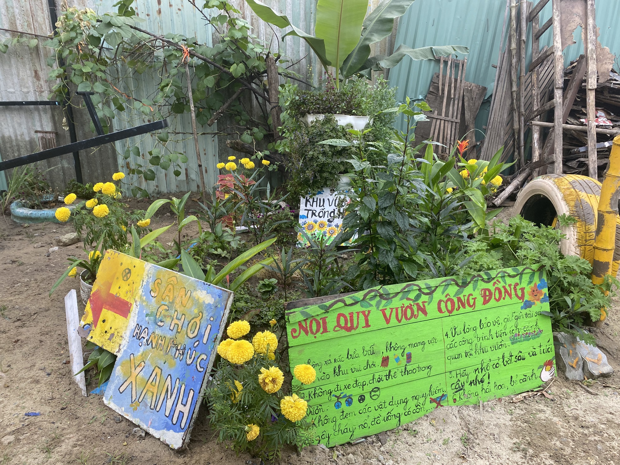 Pano được các bạn trẻ tự tay làm để trang trí khu vườn cộng đồng thêm phần sinh động tại phường Phước Mỹ, quận Sơn Trà, Đà Nẵng.