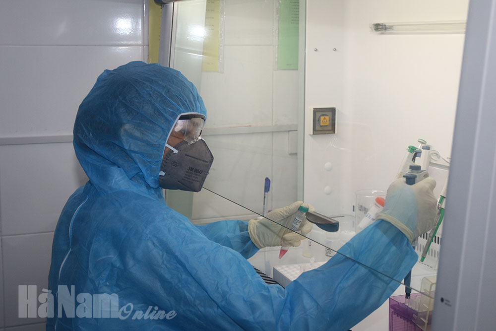 Xét nghiệm SARS-CoV-2 tại Trung tâm Kiểm soát bệnh tật Hà Nam.