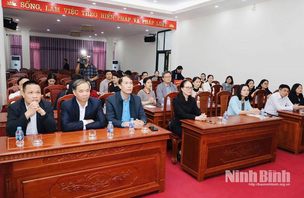 Đồng chí Trần Thị Ngân, Phó Chủ tịch Ủy ban MTTQ Việt Nam tỉnh Ninh Bình tiếp nhận ủng hộ từ các đơn vị.