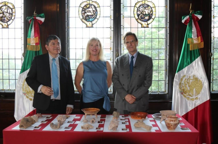 Anne Lee Dozier trao tặng chiếc bình tại đại sứ quán Mexico ở Mỹ. Ảnh: Nypost