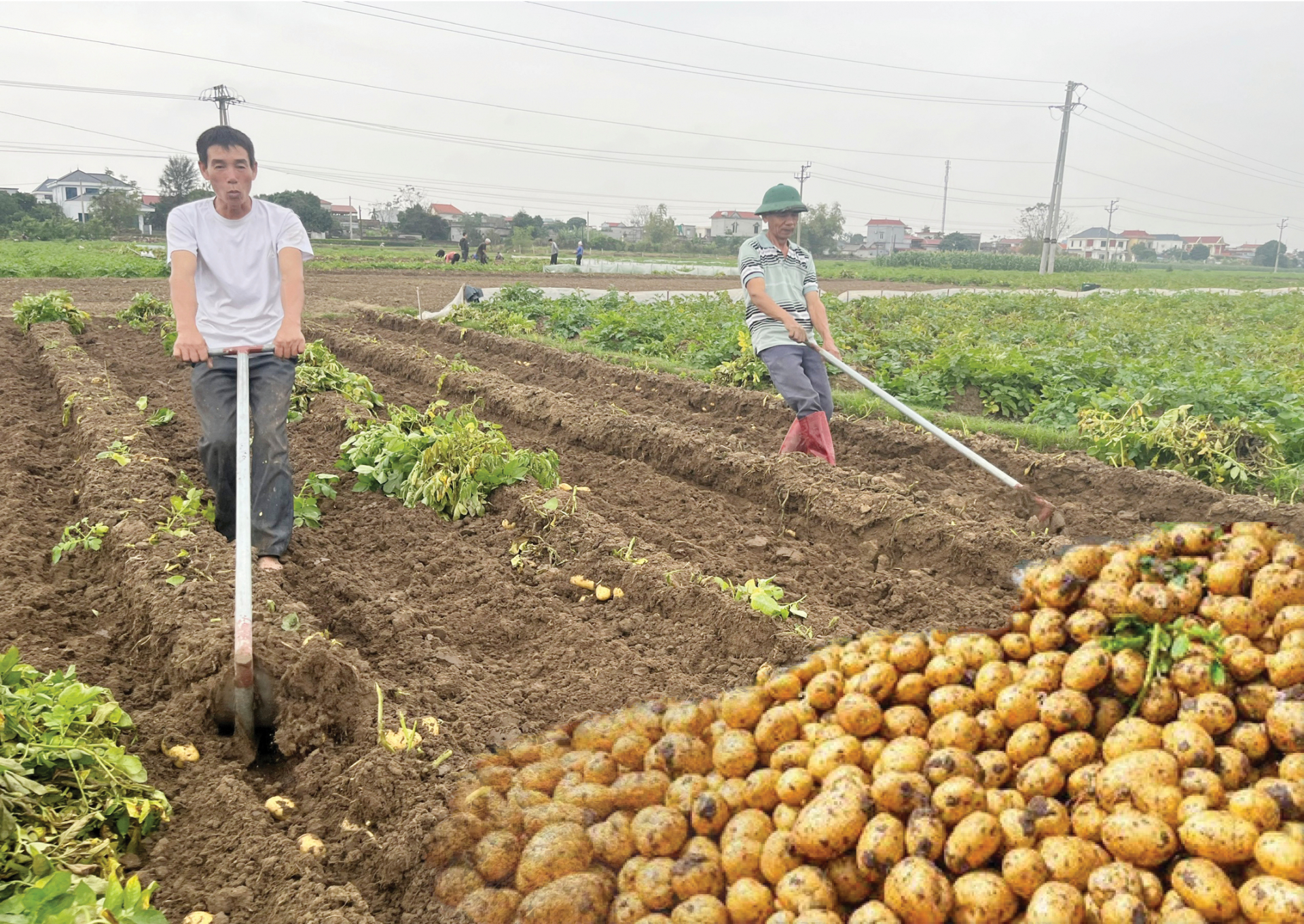 | Người dân thị trấn Nam Giang (Nam Trực) phấn khởi vì khoai tây đông "được mùa, được giá". |