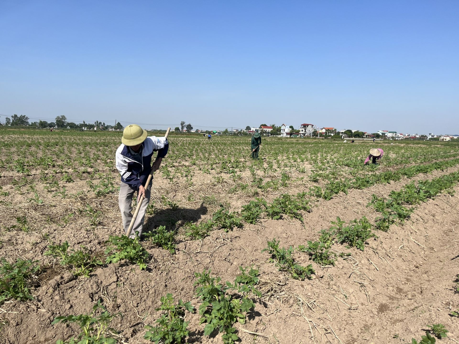 Hàng năm, vào trung tuần tháng 10, thời tiết mát mẻ, không còn mưa to là nông dân các địa phương bắt đầu trồng khoai. Trong cả vụ, người nông dân phải làm cỏ, vun luống 2 lần, nhất là lần 2 khi khoai tây phát triển củ phải vun cẩn thận từng gốc, tạo điều kiện cho cây ra nhiều tia củ, củ phình to và hạn chế tối đa hiện tượng củ khoai bị xanh vỏ. Khoai tây là cây ưa lạnh, năm nay đầu vụ nắng liên tục nên cây phát triển kém, một số loại sâu, bệnh như vàng lá, héo xanh xuất hiện nên nông dân tốn thêm chi phí phòng bệnh và chăm sóc. Tuy nhiên, giai đoạn hình thành củ thời tiết chuyển rét sâu thuận lợi cho cây phát triển tốt, củ to đều, chất lượng.