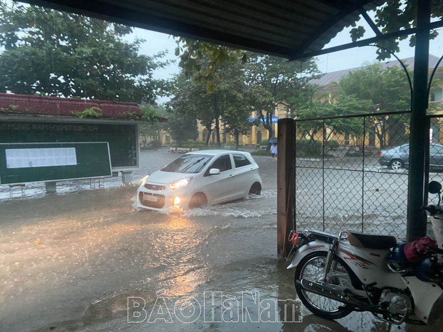 Mưa lớn gây ngập úng nhiều tuyến phố, nước tràn vào nhà dân ở Phủ Lý