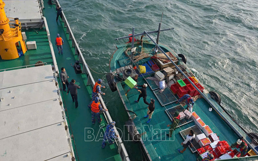 Trung tá Nguyễn Thế Tình, Chính trị viên Lữ đoàn 169, Vùng I Hải quân đi từng phòng, rồi dừng lại ở phòng chúng tôi - căn phòng rộng chưa được 10m2, gần 10 nữ phóng viên và cán bộ Quận đoàn Long Biên được bố trí nghỉ ngơi tại đó. Thiếu tá Tình ngồi xuống, hỏi han tình hình sức khỏe từng người. Lúc này, tàu đang trên khu vực quần đảo Long Châu. Chúng tôi quây quần bên nhau nói chuyện về con tàu, về Lữ đoàn 169 của anh. Mặc dù mới thành lập được gần 2 năm, nhưng Lữ đoàn 169 đã chính thức đón nhận Quân kỳ Quyết thắng vào tháng 5/2024, thực hiện nhiệm vụ bảo vệ chủ quyền biển, đảo; vận tải, chi viện đảo; vận tải đổ bộ; tham gia tìm kiếm cứu nạn, cứu hộ. Trung tá Tình cho biết: Thời gian qua, đơn vị của chúng tôi đã chỉ đạo hàng trăm lượt tàu, xuồng thực hiện nhiệm vụ bảo vệ vững chắc chủ quyền biển, đảo của Tổ quốc. Các công tác Đảng, công tác chính trị của đơn vị cũng được triển khai đồng bộ. Công tác hậu cần - kỹ thuật cũng đã bám sát và bảo đảm đồng bộ số lượng, chất lượng, chủng loại cho nhiệm vụ huấn luyện, sẵn sàng chiến đấu, tuần tra, trinh sát, vận tải chi viện đảo. Lữ đoàn đã chỉ đạo các cơ quan, đơn vị kết nghĩa với gần 20 tổ chức chính trị - xã hội trên các địa bàn đóng quân; khuyến khích cán bộ, chiến sỹ đơn vị tích cực tham gia các hoạt động “Tết hải đảo thắm tình quân dân”, “Xây dựng nhà tình nghĩa”, hỗ trợ các gia đình cận nghèo, ra quân làm sạch biển, bảo vệ môi trường... Từ đó, góp phần củng cố quốc phòng, an ninh trên địa bàn, làm cơ sở xây dựng “thế trận lòng dân” vững chắc.