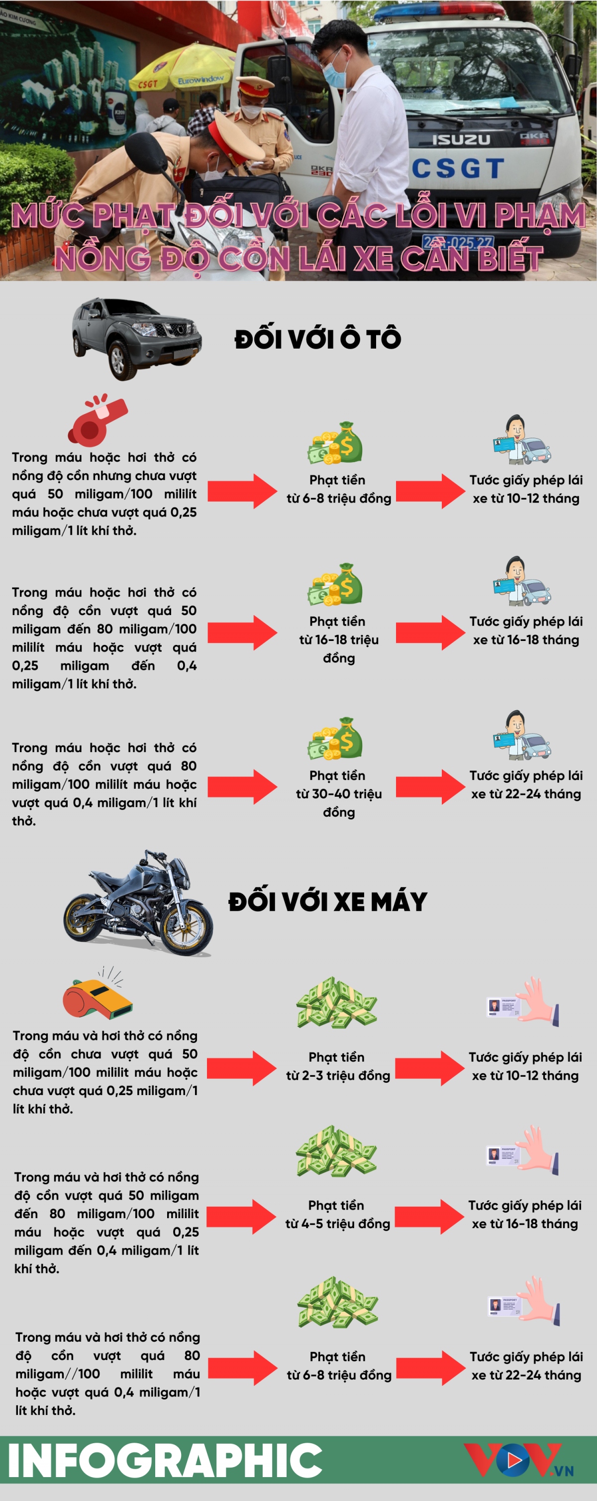 Mức xử phạt đối với các lỗi vi phạm nồng độ cồn lái xe cần biết