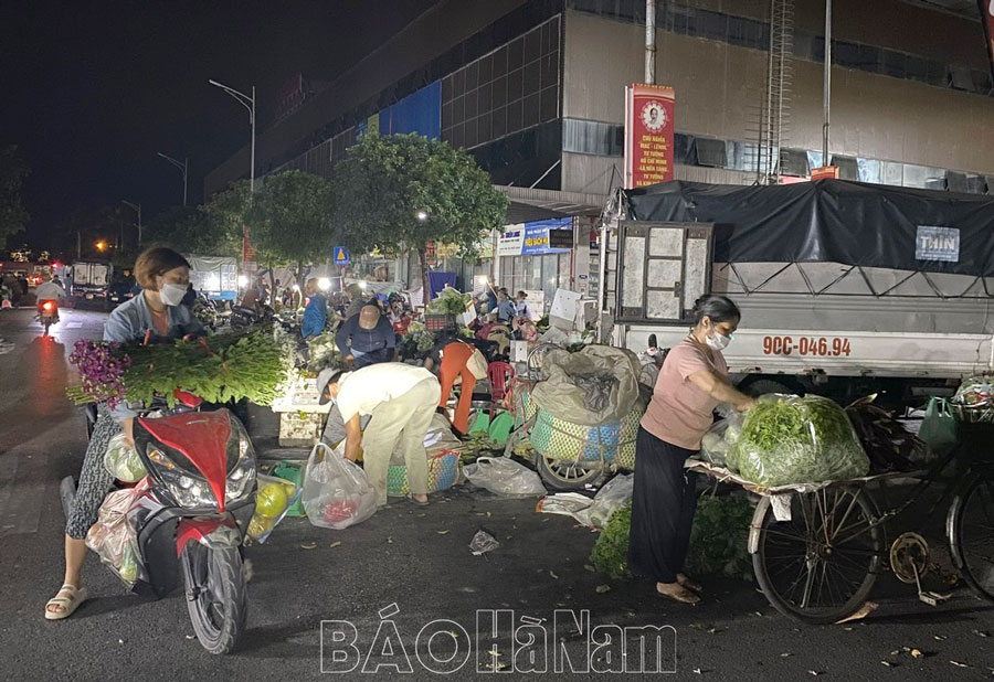 Hơn 12 giờ đêm, bà Vũ Thị Tâm, xóm 4, xã Phù Vân (thành phố Phủ Lý) đã có mặt tại chợ đêm Phủ Lý để bán buôn, bán lẻ các loại rau, củ, quả. Với lượng rau, củ là 2-3 tạ mỗi ngày, bà Tâm phải chở xe máy 2 chuyến từ nhà ra chợ. Cũng vì vậy mà hằng đêm, bà phải thức giấc từ hơn 23 giờ để chuẩn bị rau, củ, chằng đồ lên xe để vận chuyển ra chợ đêm. Làm nghề bán rau, củ ở chợ đêm này đã gần 20 năm nay nên bà Tâm có nhiều khách hàng quen là tiểu thương tại các chợ truyền thống, chợ cóc, các nhà hàng, quán ăn trên địa bàn thành phố Phủ Lý và các huyện lân cận như: Thanh Liêm, Kim Bảng, Bình Lục…