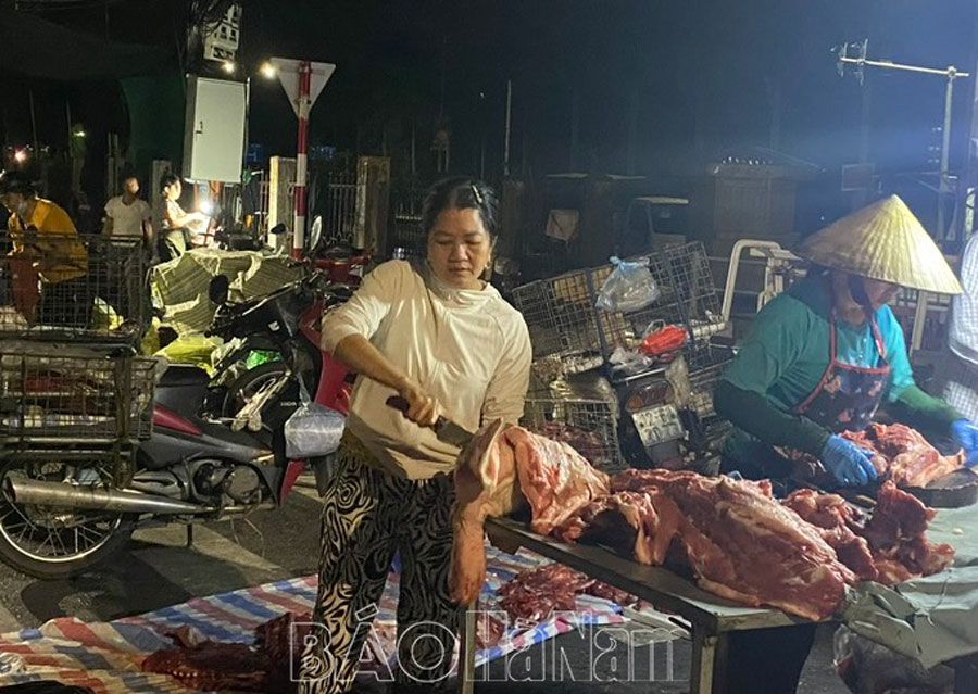 Chị Trần Thị Phương, tổ 3, Phường Quang Trung (thành phố Phủ Lý) - người có thâm niên 30 năm trong nghề bán thịt lợn tại khu vực chợ Bầu (thành phố Phủ Lý) cho biết: Trước đây, tôi chỉ bán thịt lợn trong chợ Bầu vào ban ngày với số lượng thịt tiêu thụ khoảng 5-7 yến mỗi ngày. Tuy nhiên, từ năm 2020 đến nay, nhận thấy nhu cầu cao của thị trường đối với mặt hàng này, tôi đã bán cả vào buổi đêm. Với số lượng khách mua buôn, mua lẻ lớn, mỗi phiên chợ đêm tôi bán được 2-3 tạ thịt lợn. So với buổi chợ ban ngày, giá bán buôn buổi đêm tuy có thấp hơn nhưng lại tiêu thụ nhanh và số lượng bán ra lớn nên cho thu nhập ổn định hơn. Mỗi ngày, tôi phải làm việc 11-12 giờ liên tục, từ 1 giờ sáng đến 12 giờ trưa. Nhiều hôm, nếu không bán hết hàng trong buổi sáng, 4 giờ chiều tôi lại mang thịt ra chợ bán. Thức đêm miết rồi cũng quen, hôm nào ốm đau không ra chợ đêm được là cũng thấy nhớ cái không khí mua bán tấp nập này lắm. Với những người kinh doanh ở chợ đêm, nơi đây đã trở thành một phần tất yếu trong cuộc sống.