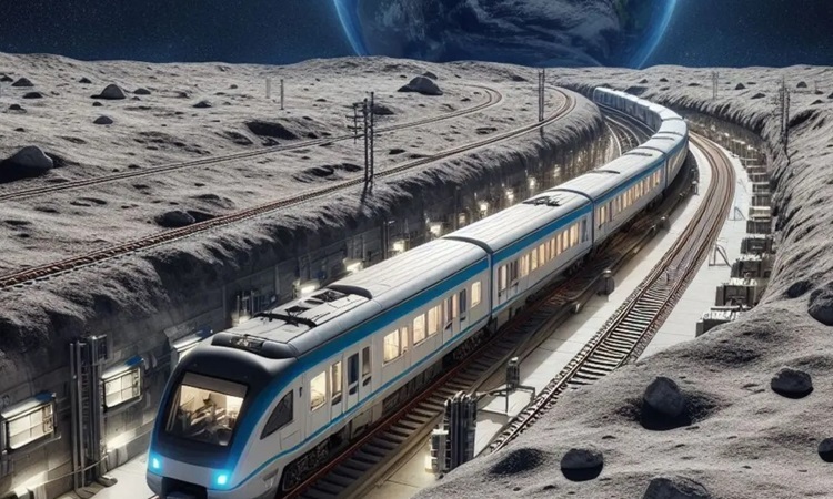 Mô phỏng hệ thống đường sắt trên Mặt Trăng. Ảnh: DALL-E3