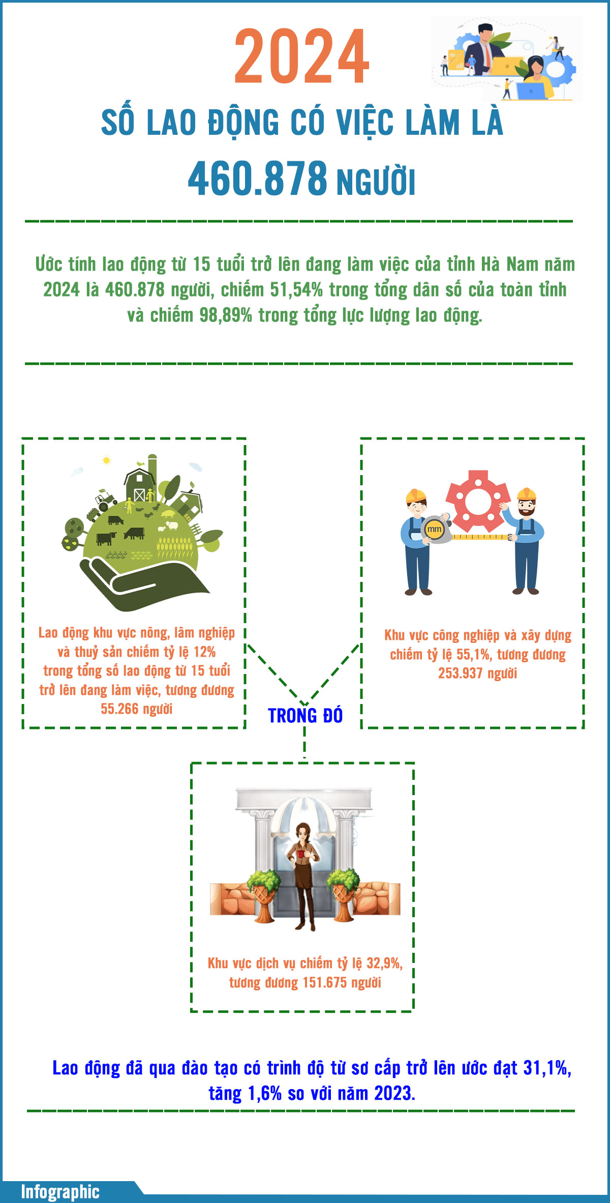 Năm 2024, số lao động có việc làm là 460.878 người