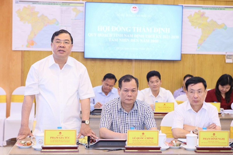 | Đồng chí Phạm Gia Túc, Ủy viên BCH Trung ương Đảng, Bí thư Tỉnh uỷ Nam Định phát biểu tại Hội nghị thẩm định Quy hoạch tỉnh Nam Định thời kỳ 2021 - 2030, tầm nhìn đến năm 2050. (Ảnh: Viết Dư) |