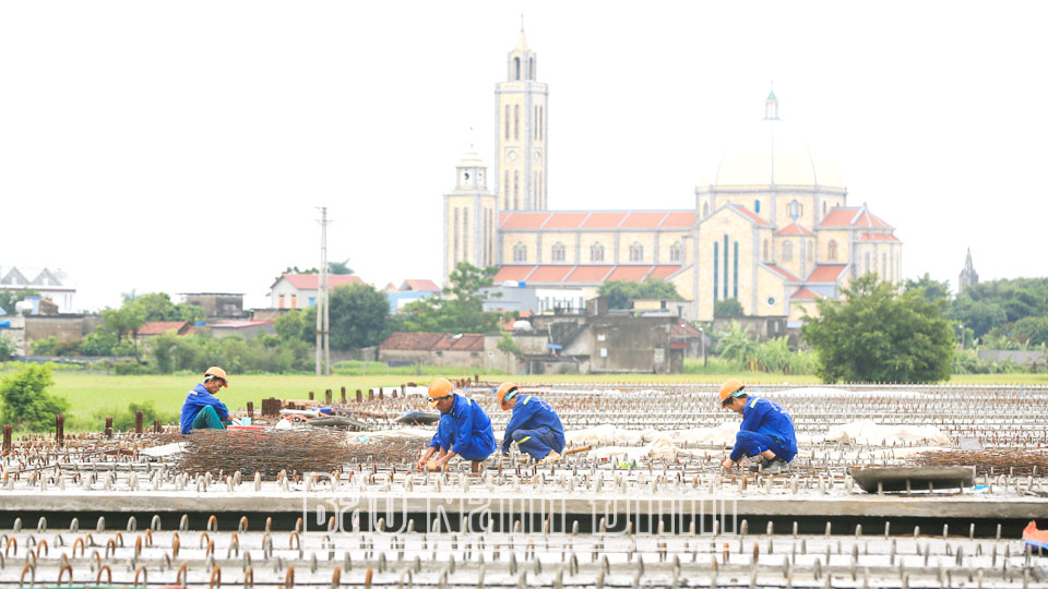 | Công nhân xây dựng tuyến đường Bộ ven biển đoạn qua xã Hồng Quang (Nam Trực). |